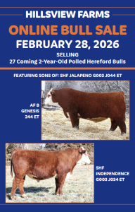 | Hillsview Herefords Online Sale | Eureka, SD www.thelivestocklink.com | 1772265600 Saturday, February 28, 2026 |